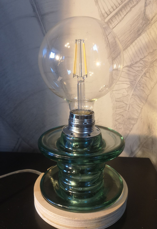 Illuminez votre intérieur avec élégance grâce à cette pièce maîtresse de ma collection "Éclats de Verre". Ce luminaire d'exception détourne un véritable isolateur électrique en verre massif, autrefois utilisé sur les lignes haute tension. Sa teinte vert d'eau naturelle crée des reflets uniques une fois l'ampoule allumée.